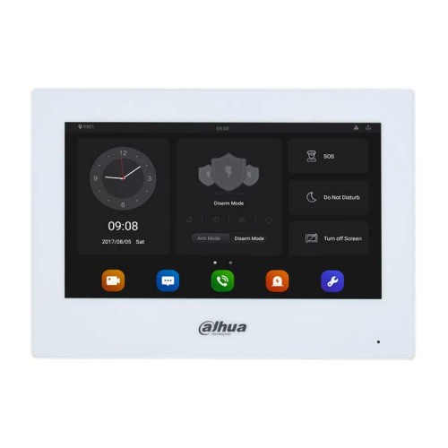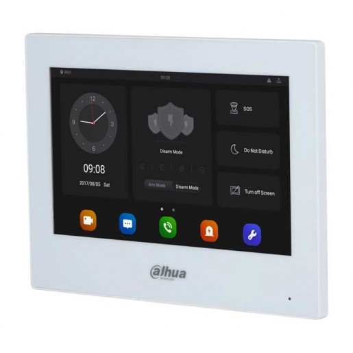 Монитор видеодомофона IP 7-и дюймовый, черный/белый 1024x600 разрешение, ёмкостной сенсорный экран; тревожные входы / выходы 8/1; RS485; LAN; поддержка micro-SD до 256Гб; Возможность просмотра IP видеокамер; Питание: DC 12В/PoE(802.3af); Габаритные размеры: 190 мм х 135 мм х 26 мм; Установка - на стену.