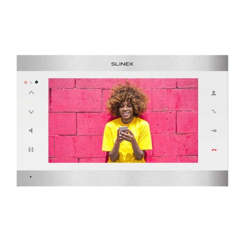 1080P цветной, настенный, 10 сенсорный IPS TFT экран 16:9, разрешение экрана 1024×600. Подключение 2-х панелей и 2-х камер любого из стандартов: AHD/TVI/CVI/CVBS до 2 Мп, либо 2-х камер IP до 2Мп. Запись фото или видео на SD-карту до 256 ГБ. MP3 мелодии вызова. Интерком до 4-х домофонов: SL-10M(HD), Sonik 10, SL-07M(HD), SQ-07MT(HD), SM-07M(N/HD), Sonik 7, SQ-04M; SL-07IP(HD) и SL-10IPT(HD), а также SM-07N/SL-07N/SL-10N/Sonik 7 Cloud могут быть только основными при соединении в интеркоме. Получение входящего вызова от вызывных панелей на смартфон, подключение к сети Ethernet, квадратор, функция DVR (запись по всем четырем каналом по детекции движения или по расписанию), встроенный Wi-Fi. Удаленный просмотр дополнительных камер и вызывных панелей. 16 полифонических мелодий. Режим «Не беспокоить», заставка с часами. Потребляемая мощность – до 12 Вт. Питание: ~100-240 В или +13,5 В. Размеры: 305×190×24 мм. Цветовые решения: серебро+черный, серебро+белый.