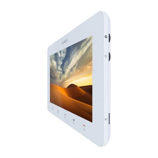 "Цветной, настенный, 7"" цветной TFT LCD дисплей 16:9, разрешение экрана 1024×600. Подключение 2-х панелей и 2-х камер любого из стандартов: AHD/CVBS/TVI/CVI. Встроенная память на 100 кадров. Поддержка microSD карт до 64 ГБ. Программная детекция движения. Интерком до 4-х домофонов: SL-10M(HD), Sonik 10, SL-07M(HD), SQ-07MT(HD), SM-07M(N/HD), Sonik 7 (Sonik 7 Cloud), SQ-04M, SL-07IP(HD) и SL-10IPT(HD) могут быть только основными при соединении в интеркоме). Три временных режима уровня громкости, режим «Не беспокоить». Потребляемая мощность – до 7 Вт, питание: ~100-240 В или +13,5 В. Размеры: 193×123×18 мм. Цветовые решения: серебро, графит, белый.