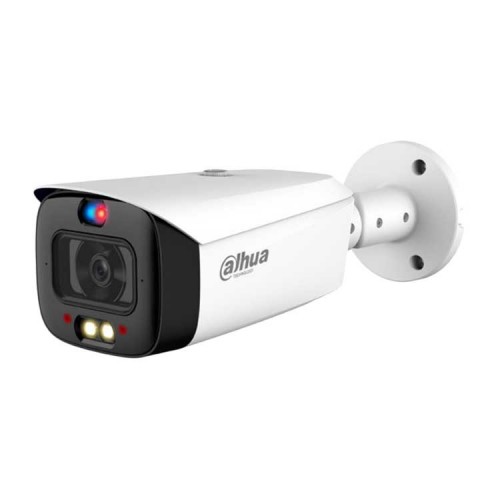 4Мп; 1/2.7” CMOS; объектив 2.8мм; WDR(120дБ); чувствительность 0.003лк@F1.0; сжатие: H.265+, H.265, H.264+, H.264, MJPEG; 3 потока до 4Мп@25к/с; видеоаналитика: SMD 4.0 (интеллектуальный детектор движения), AI SSA (Автоматическая адаптация сцены), пересечение линии, контроль зоны; тревожные вх/вых: 1/1; аудиовх/вых: 1/1; встроенные 2 микрофона и громкоговоритель; LED-подсветка до 30м, ИК-подсветка 30м; сигнализация красно-синей подсветкой; MicroSD до 256Гбайт; защита: IP67; питание: 12В(DC), PoE; корпус: металл+пластик