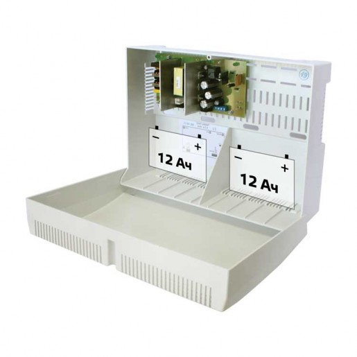 24 В, 3,5 А. Корпус под 2 АКБ 12 Ач. Сообщение «Переход на резерв» осуществляется с регулируемой задержкой. Соответствует ФЗ 123 и ГОСТ Р 53325-2012: 3 индикатора и 3 информационных выхода — Сеть, АКБ, Выход, защита выхода от перегрузки и КЗ, защита АКБ от глубокого разряда, КЗ и переполюсовки, контроль наличия АКБ, холодный пуск